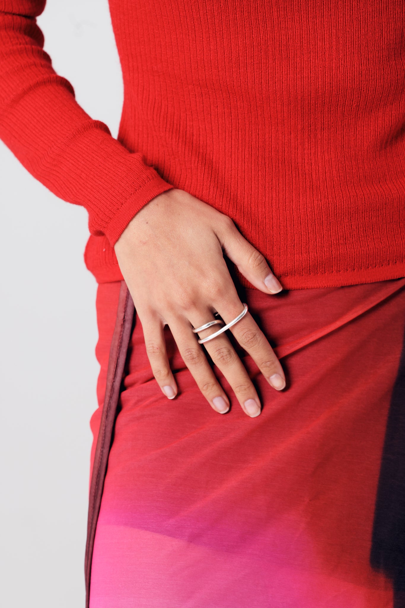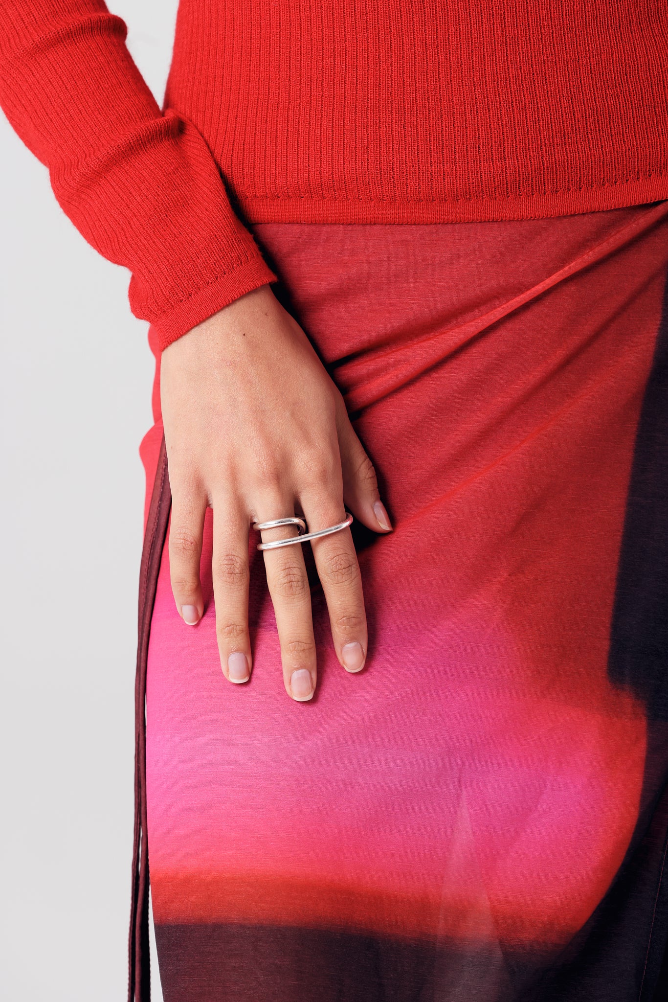 Double ring, crafted using the “hollow” technique, in 92.5 sterling silver.