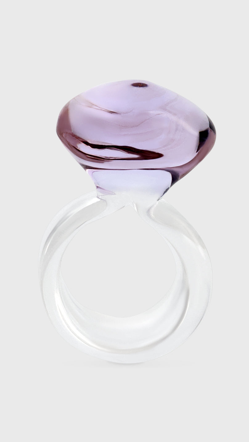 Fev Design Murano Glass Ring, hand-blown in the Venetian Ice Island. The glass is shaped hot without a mold directly in the flame.