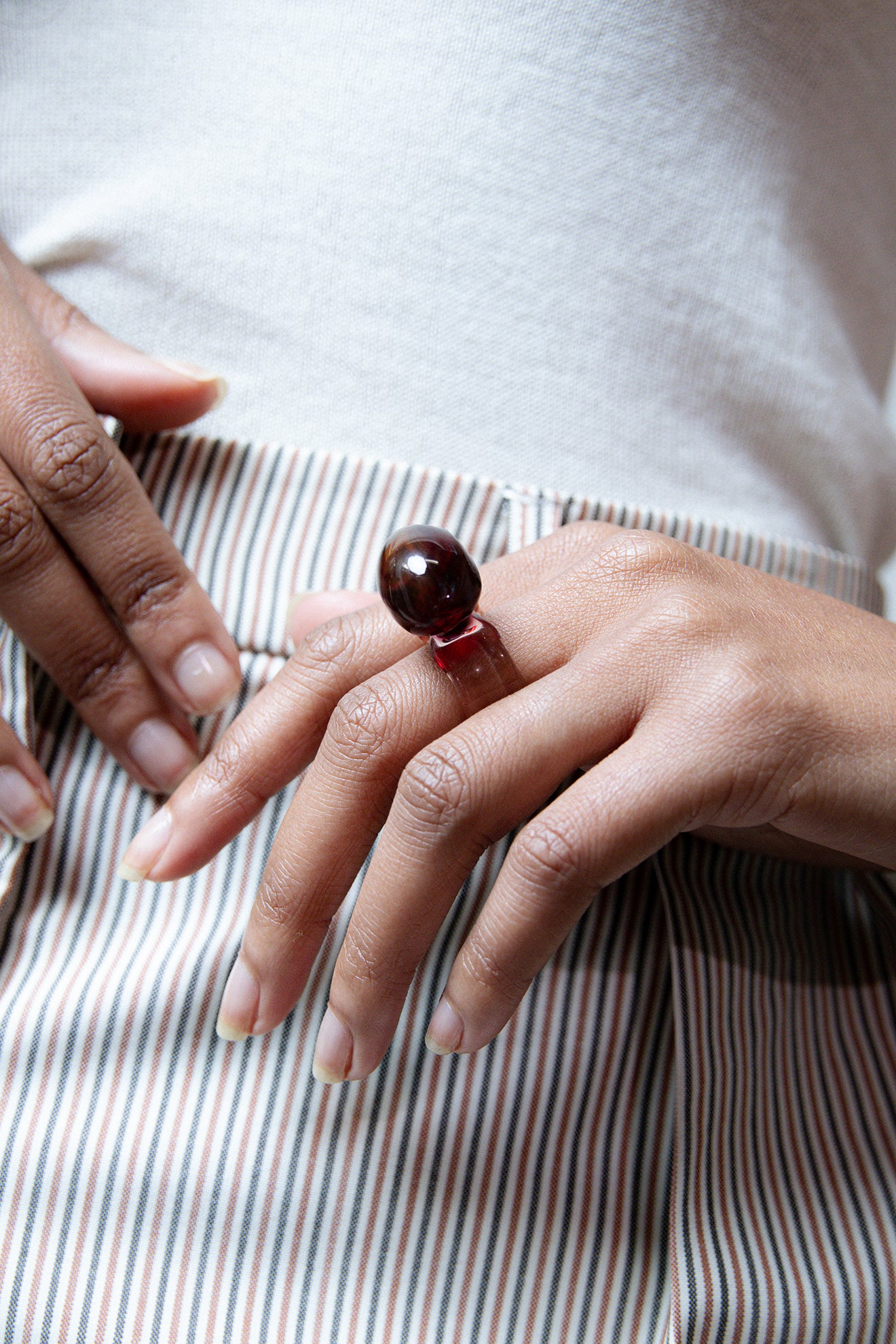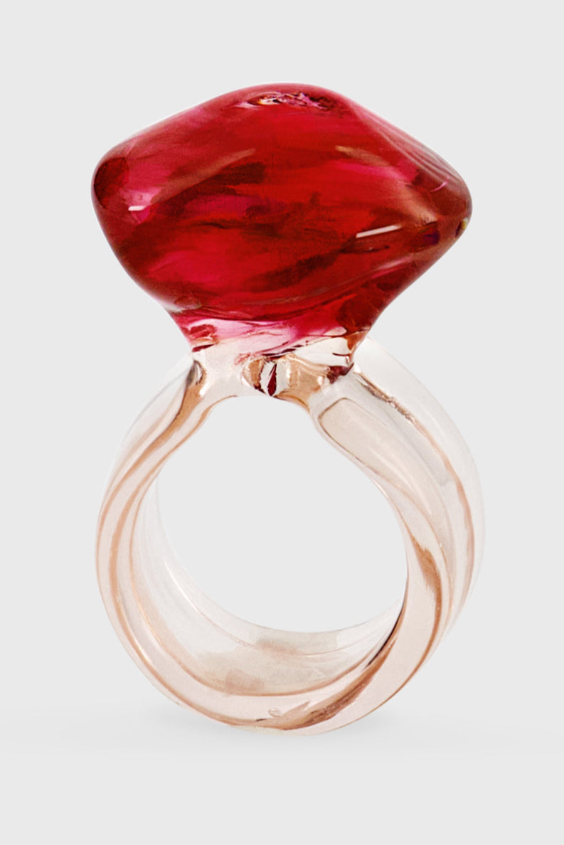 Fev Design Murano Glass Ring, hand-blown in the Venetian Ice Island. The glass is shaped hot without a mold directly in the flame.