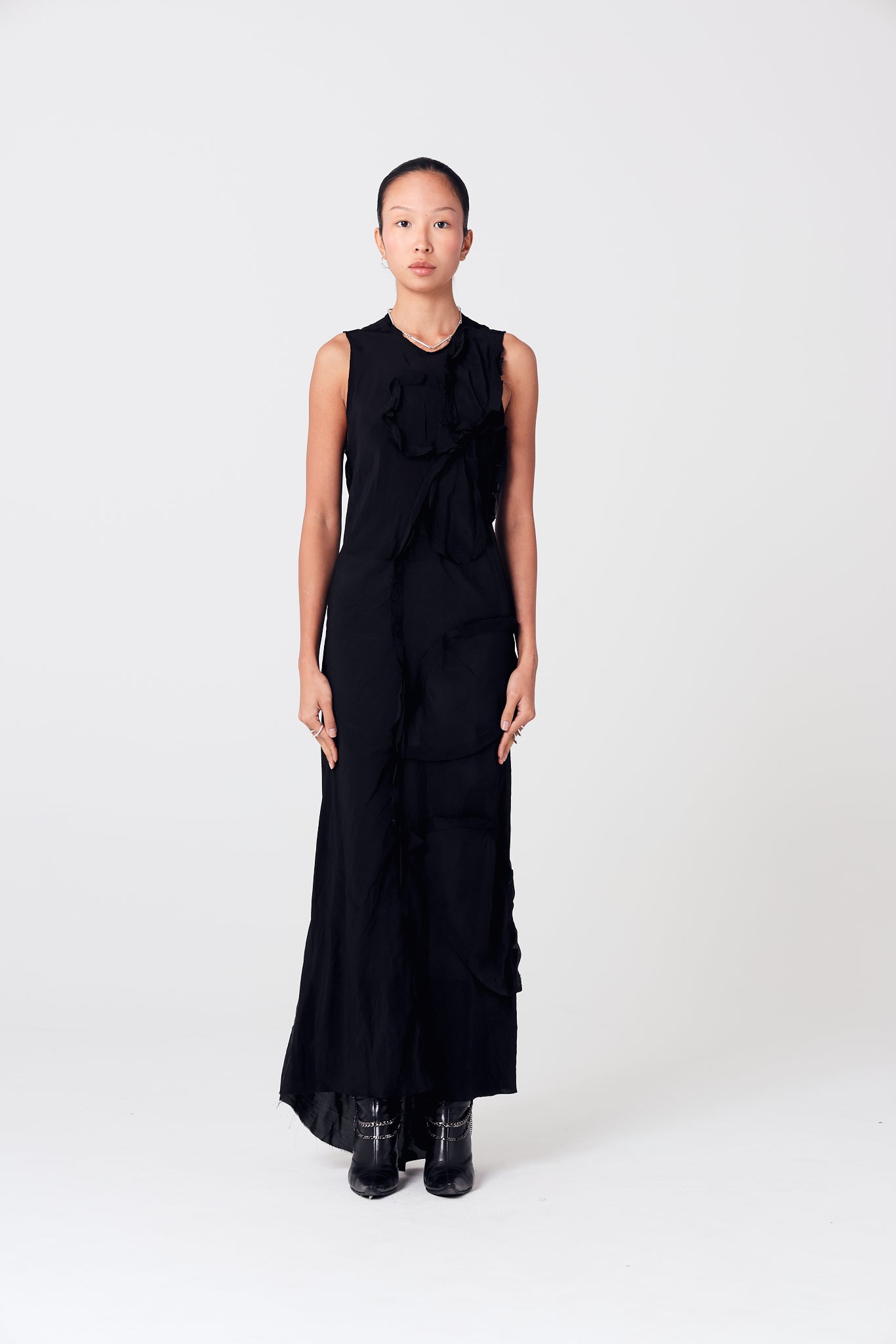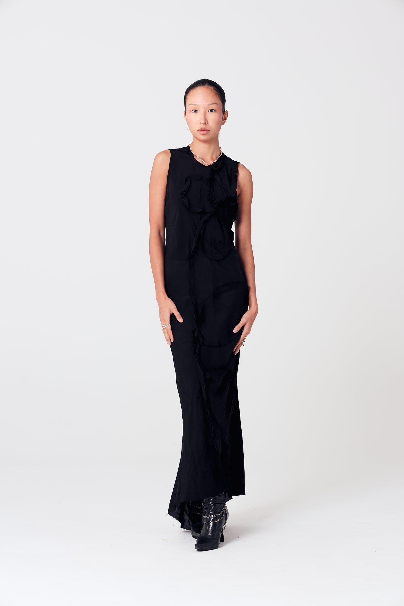 Long viscose dress, cut on the bias.