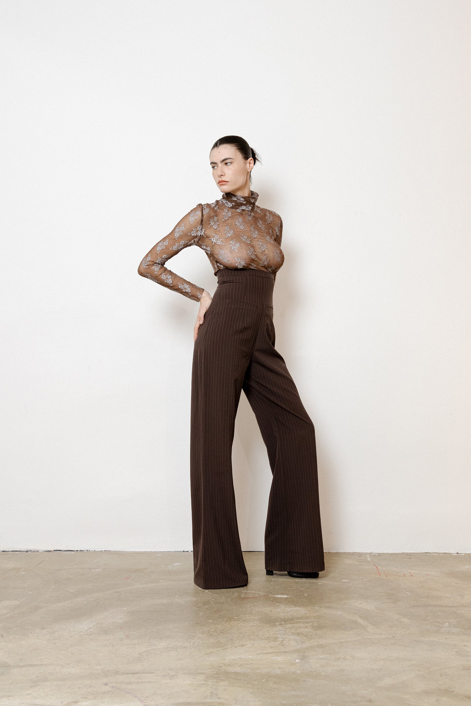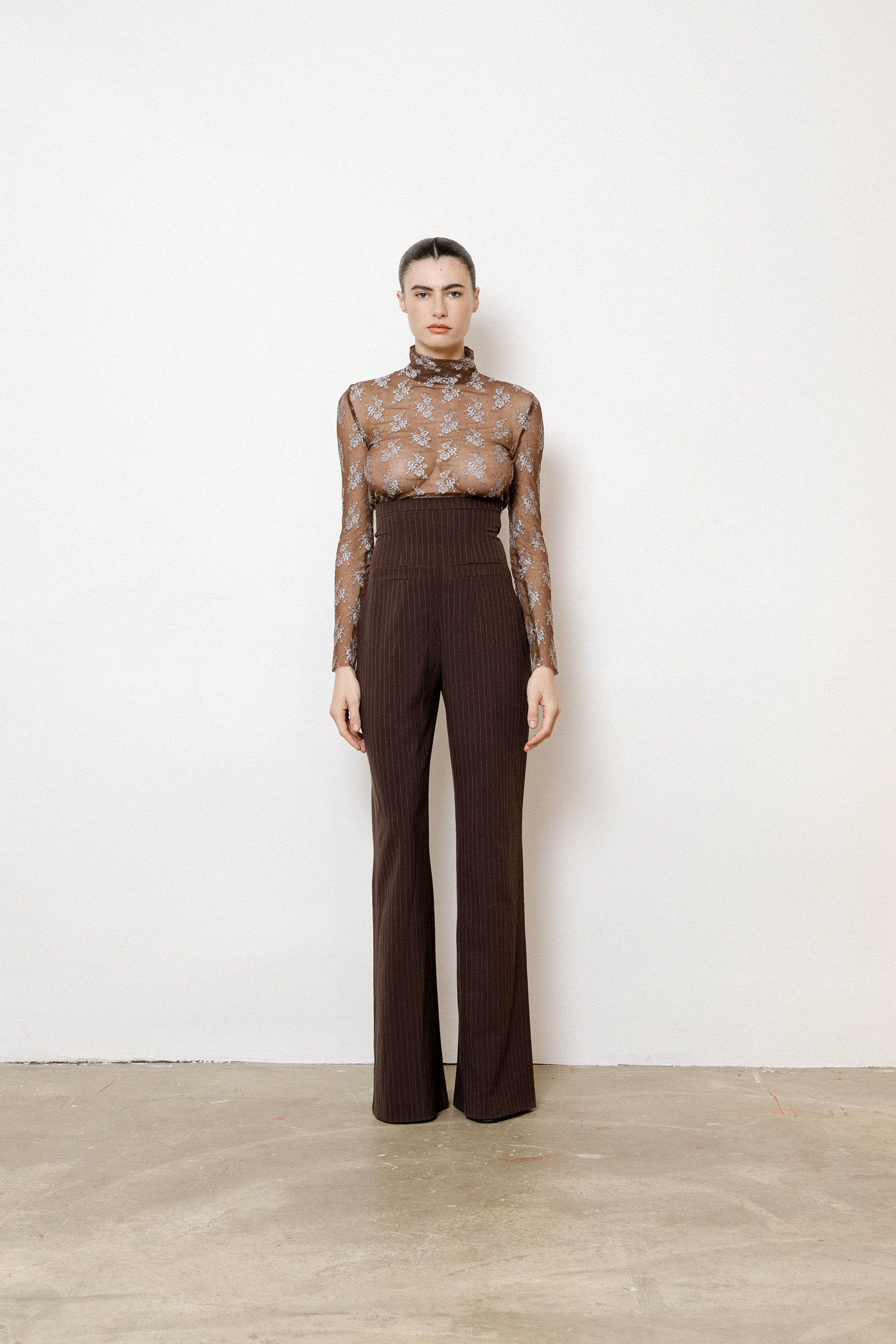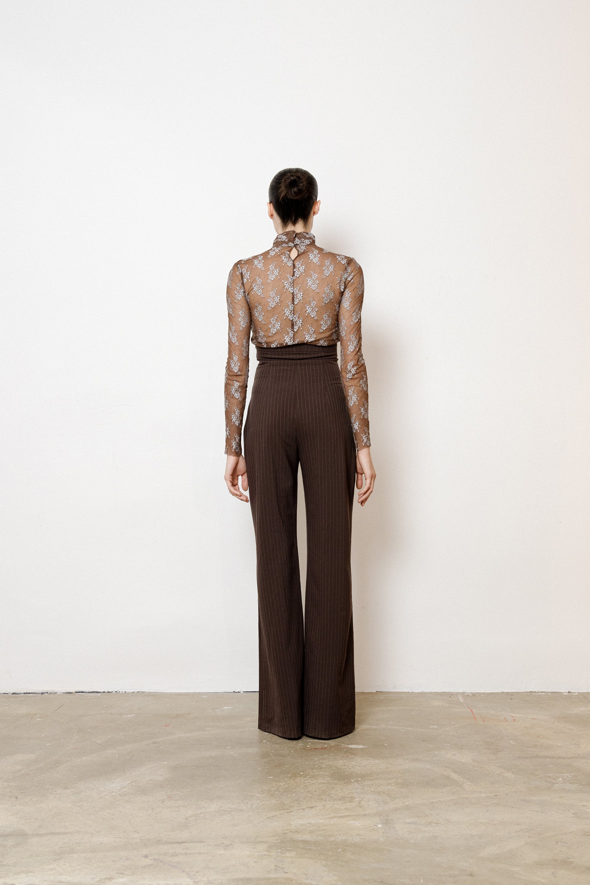 Long sleeved Mesh Jacquard Top made from Parisian haute couture dead stock. Opens at the center back collar with a little invisible snap. The fabric is stretchy. Each piece is made to order and requires time and care to make in our Parisian atelier or by skilled artisans. Care: - Hand wash, max 30°C - Can be dry cleaned - No need to iron