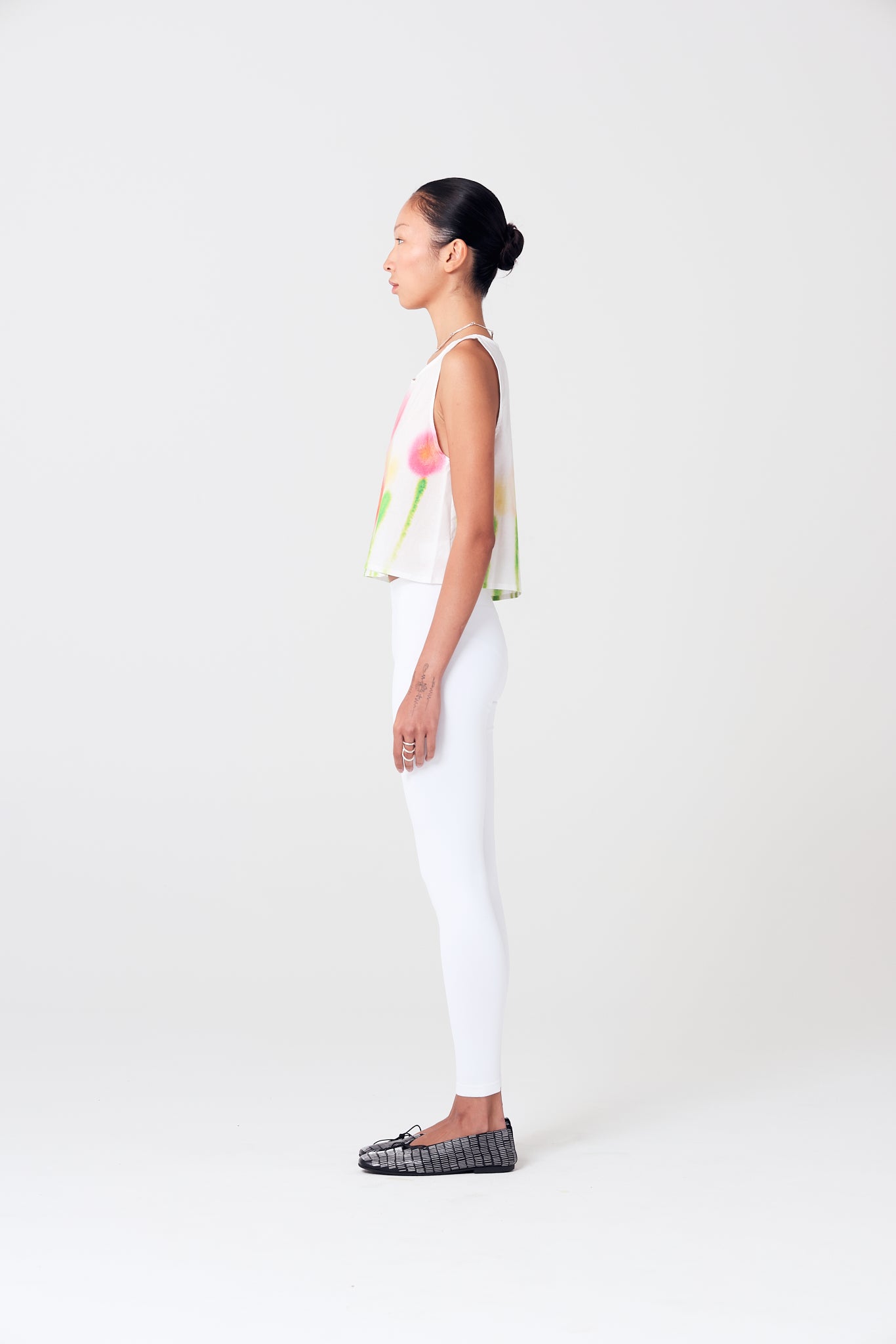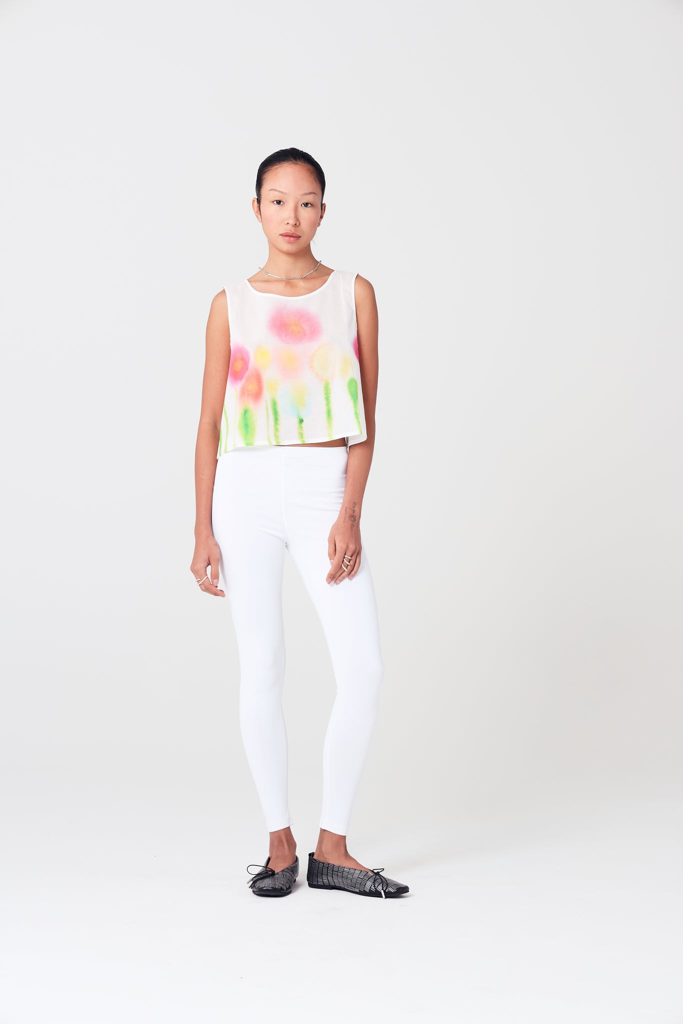 Printed cotton tank top with a floral motif, based on a hand-painted design.