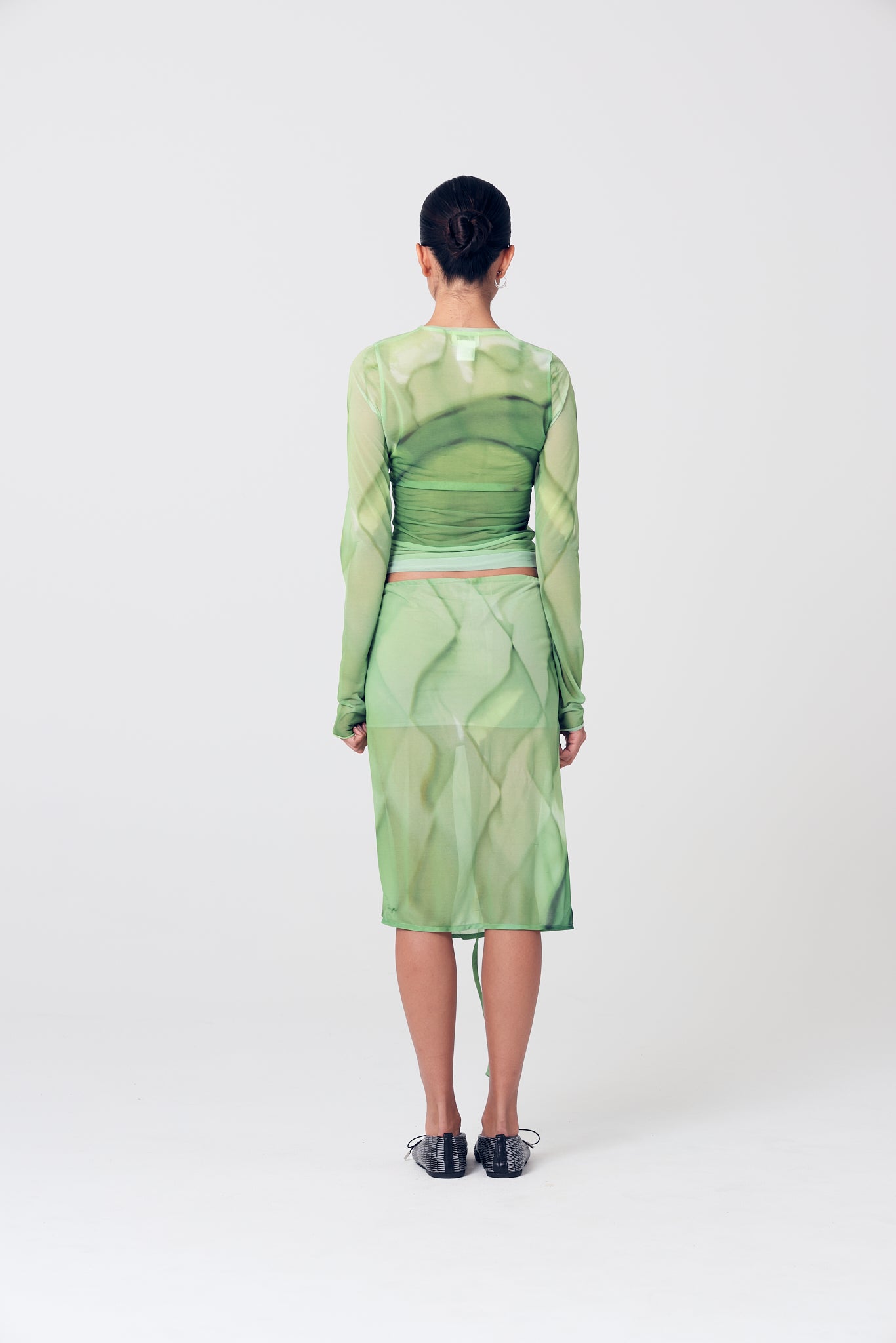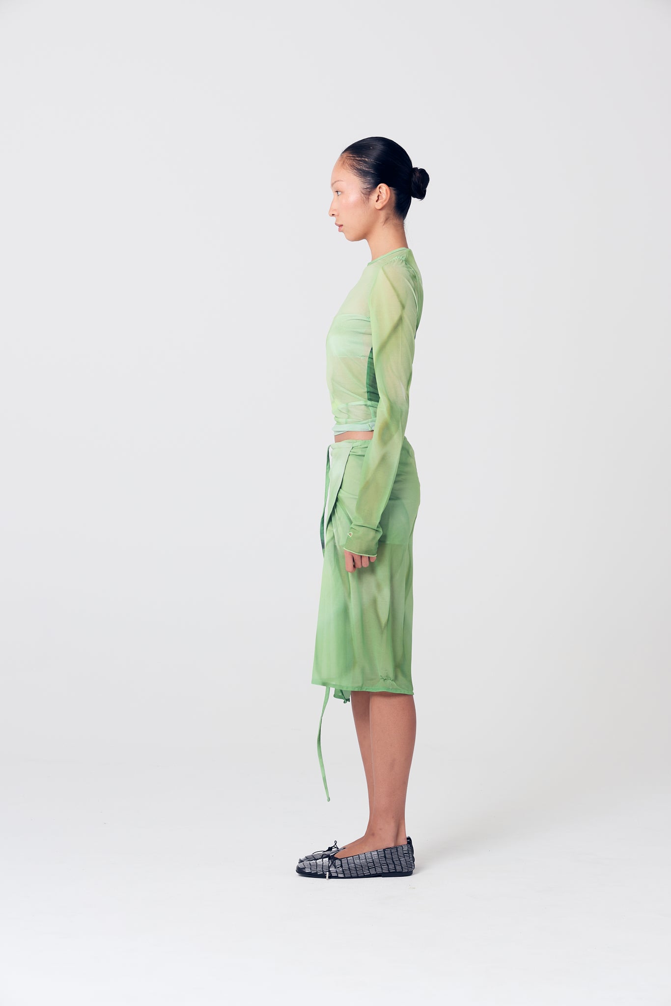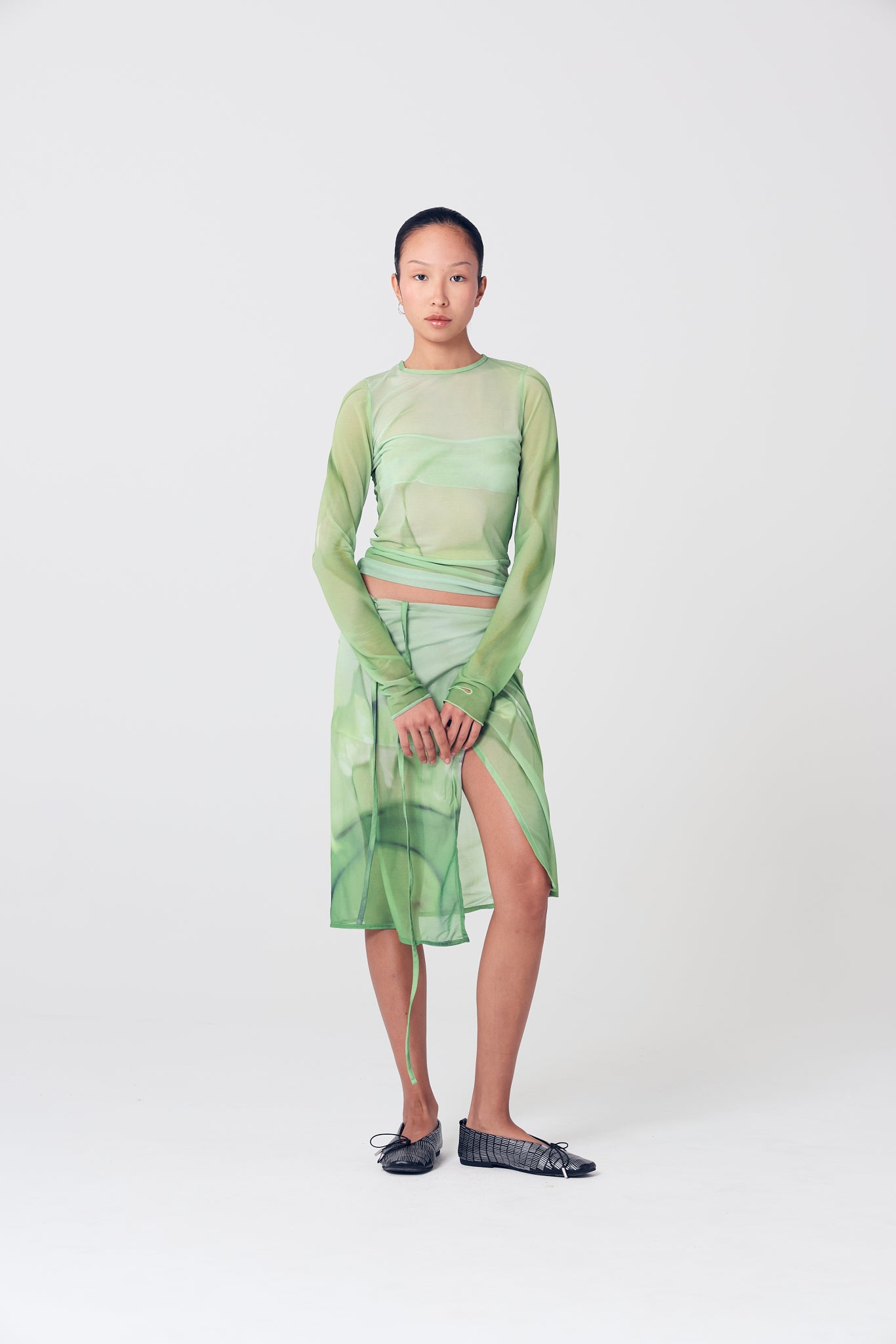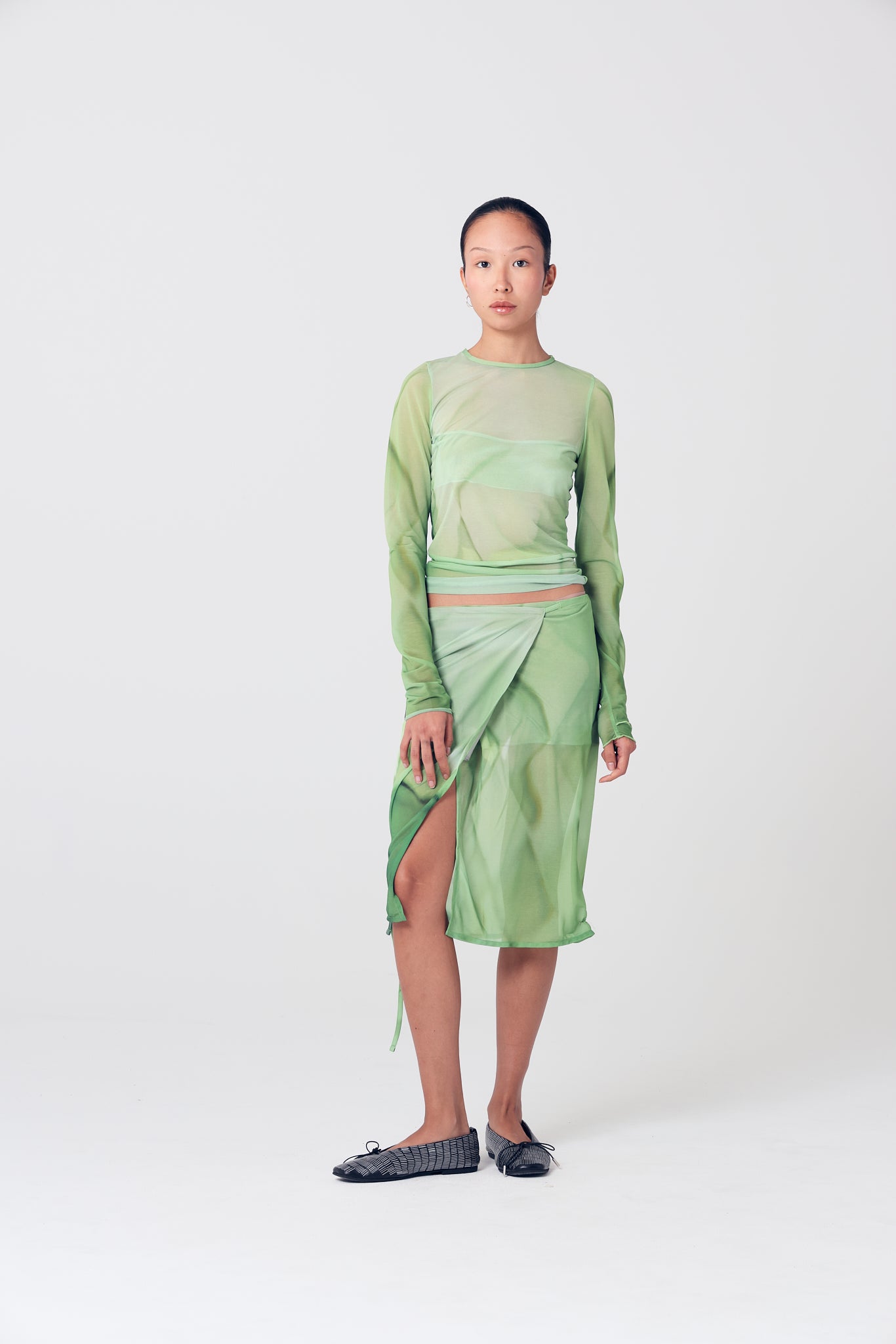 The skirt is made from mesh fabric and has been handcrafted by a skilled seamstress in Brittany, France. The high-quality fabric is sourced from LVMH's deadstock inventory.