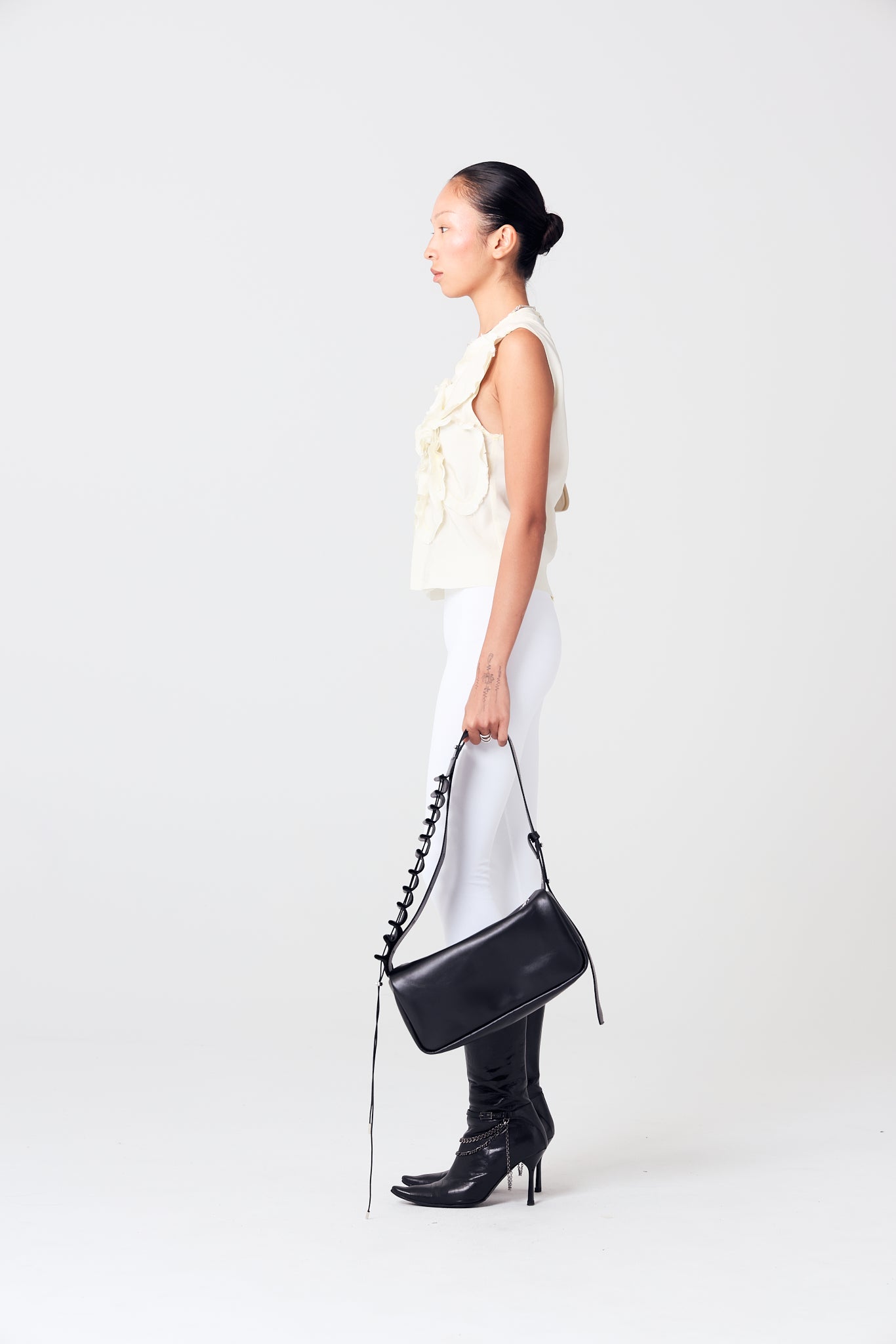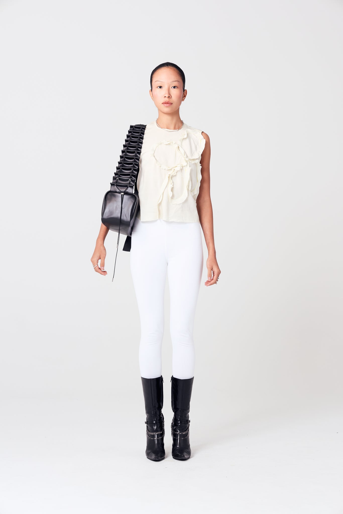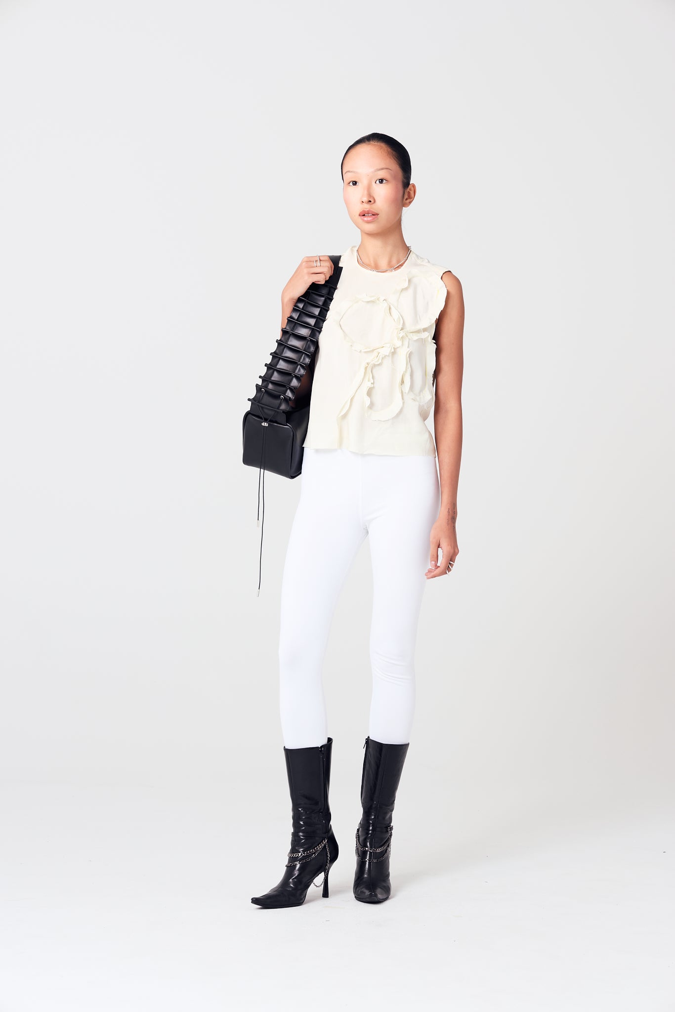 This elegant top features an abstract, flower-inspired design created from silk, with a touch of volume and texture to its minimalist silhouette.