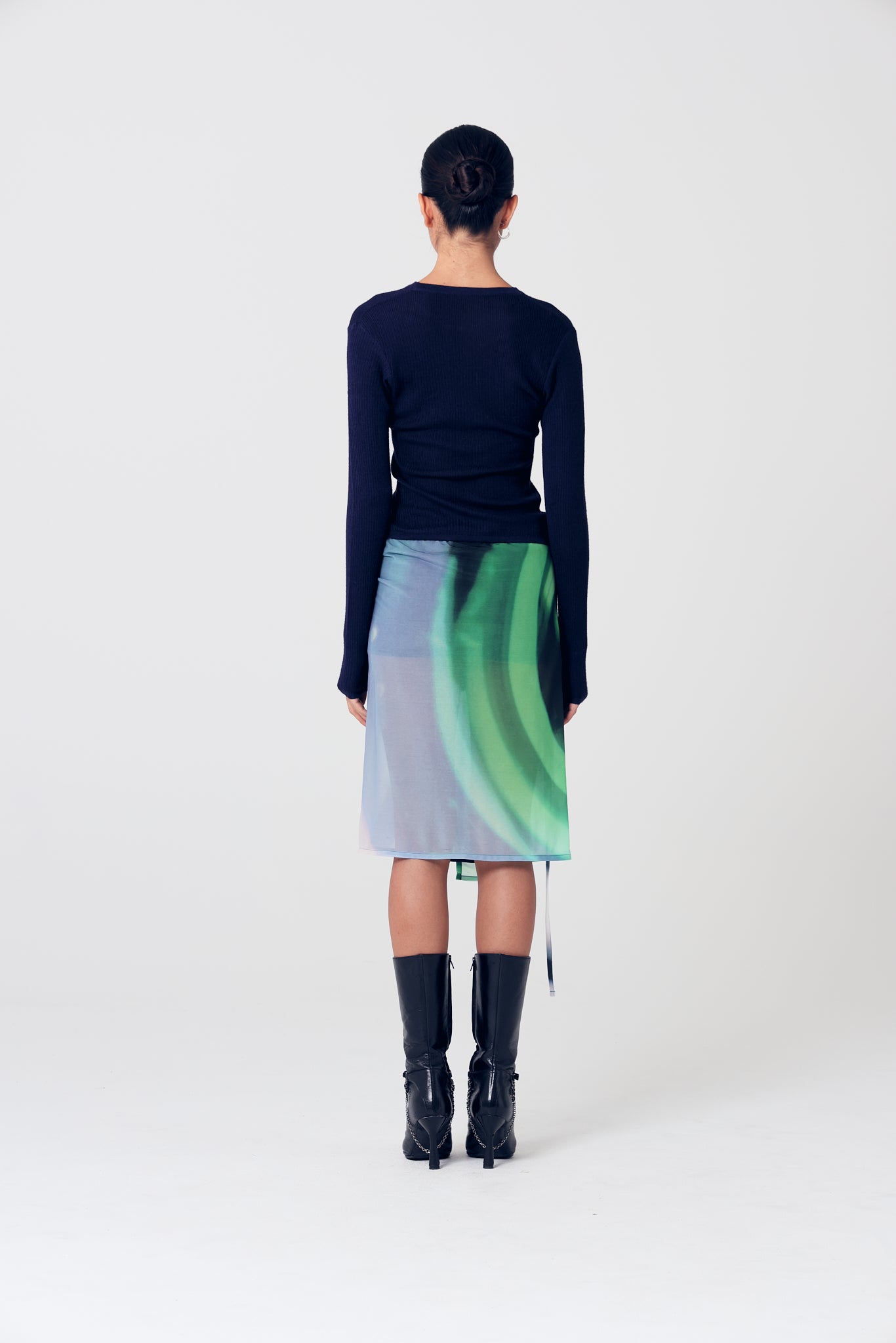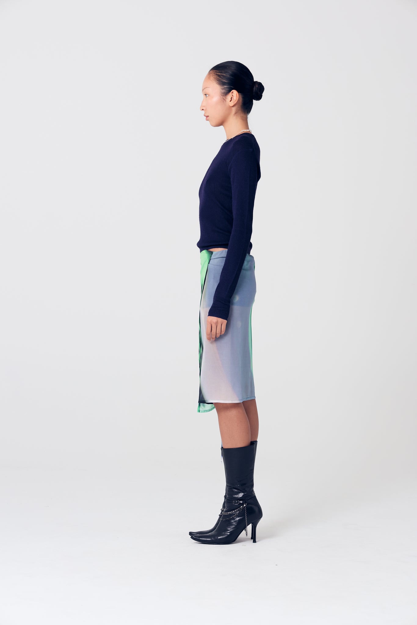 The skirt is made from mesh fabric and has been handcrafted by a skilled seamstress in Brittany, France. The high-quality fabric is sourced from LVMH's deadstock inventory.