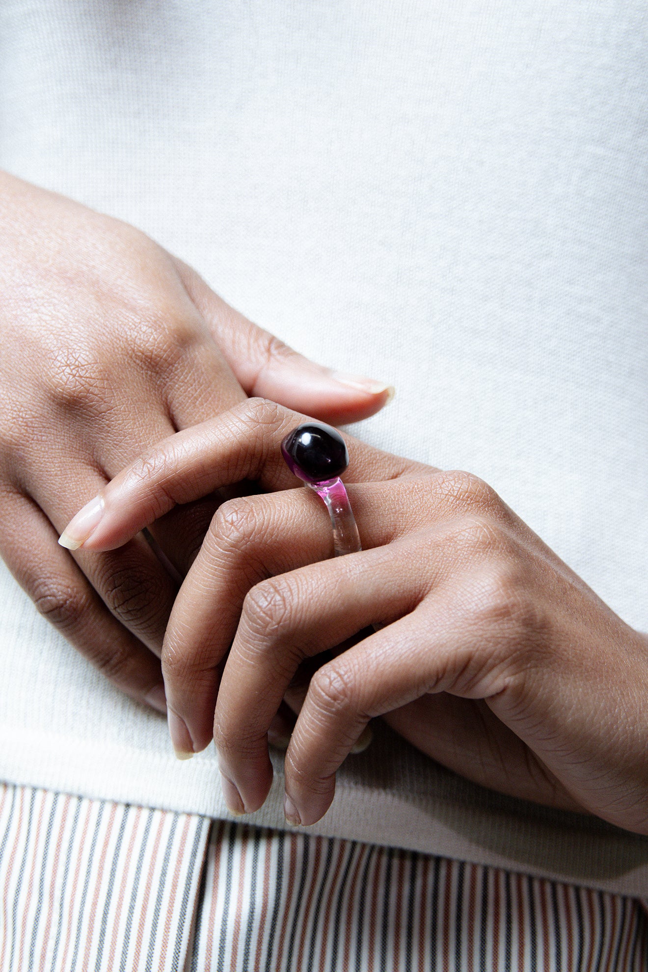 Fev Design Murano Glass Ring, hand-blown in the Venetian Ice Island. The glass is shaped hot without a mold directly in the flame.