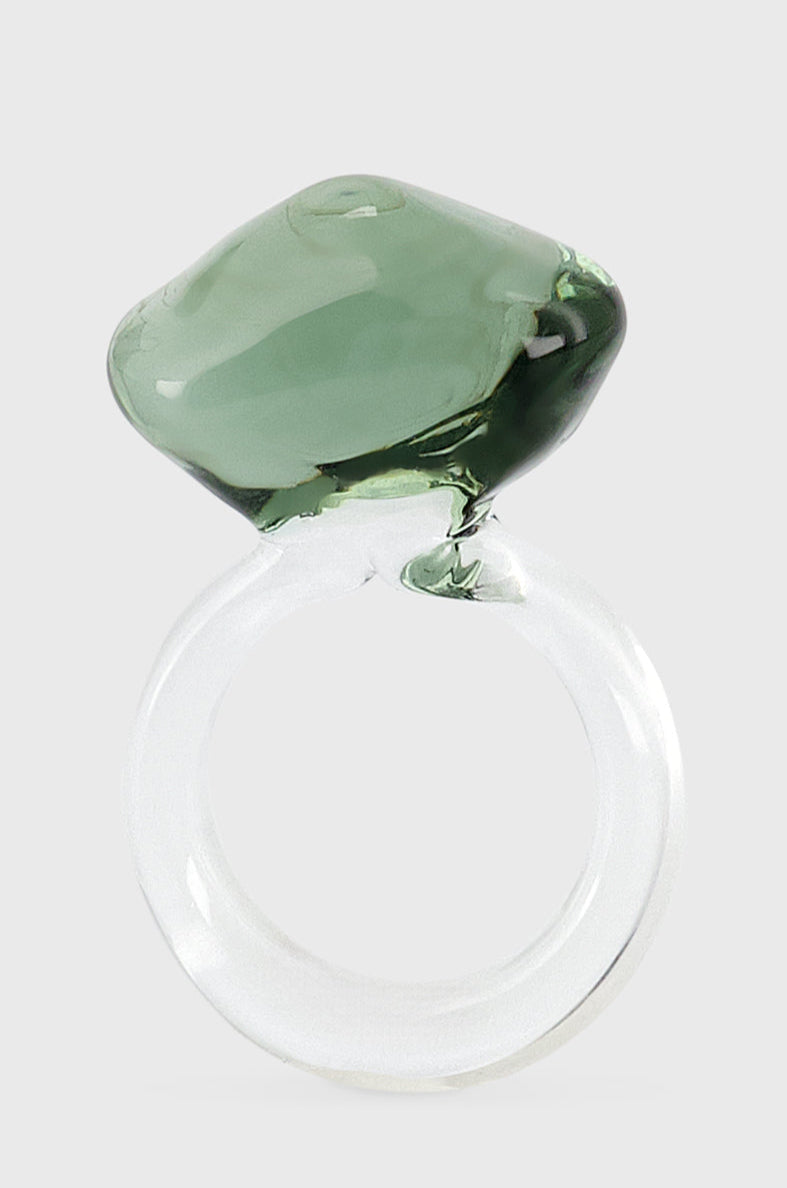 Fev Design Murano Glass Ring, hand-blown in the Venetian Ice Island. The glass is shaped hot without a mold directly in the flame.