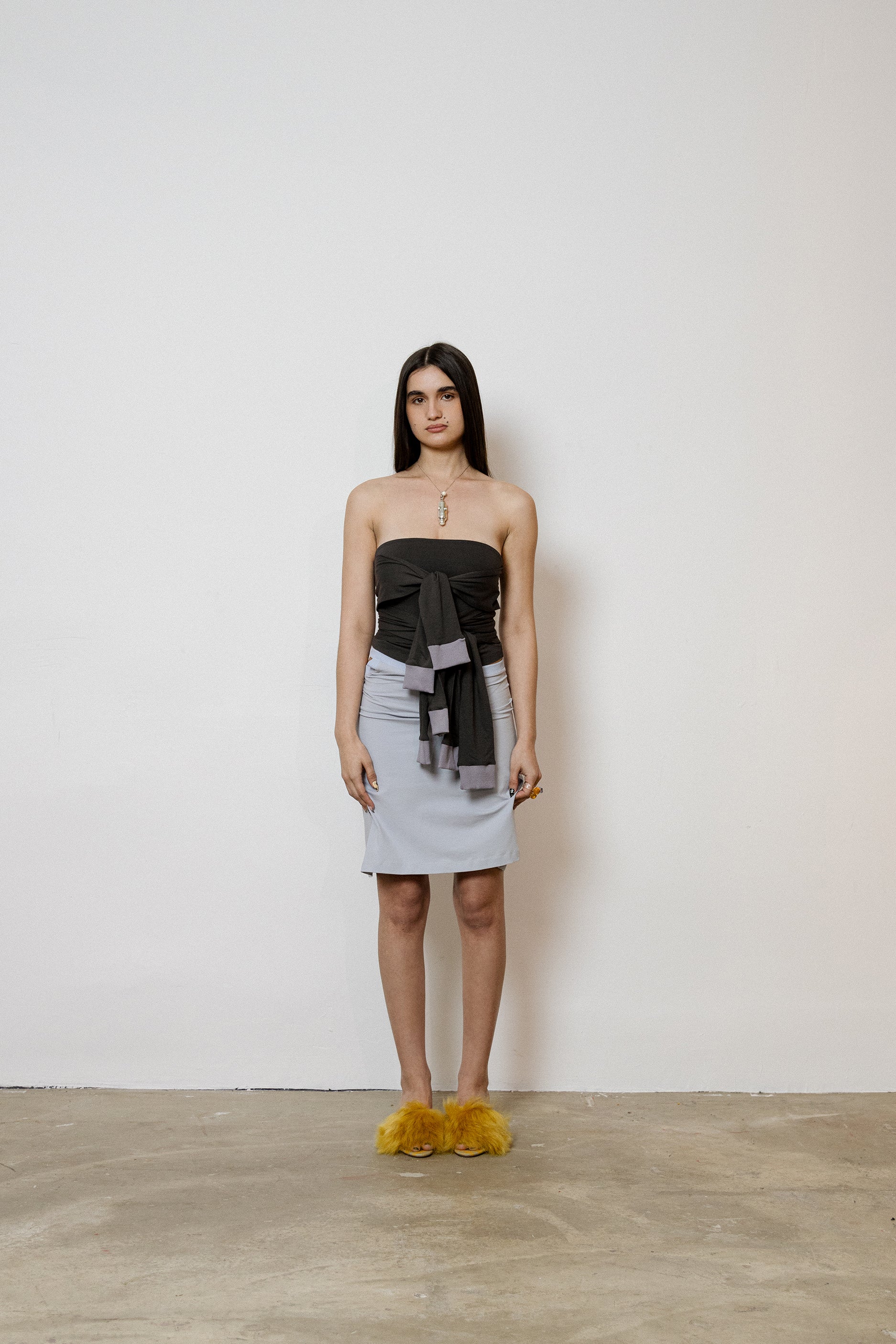 Tube top with 3 rows of sleeves to tie at the front, or as you wish.