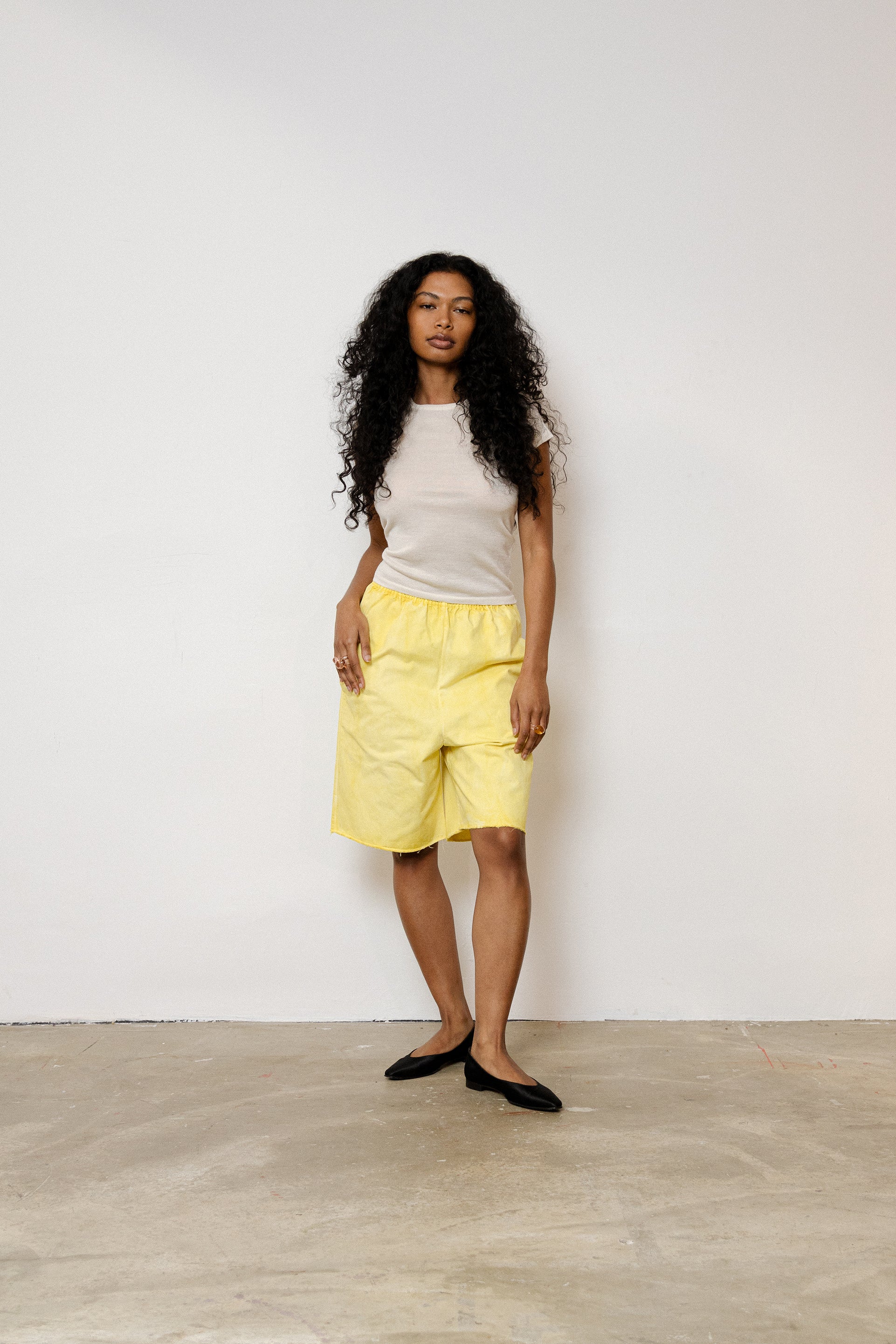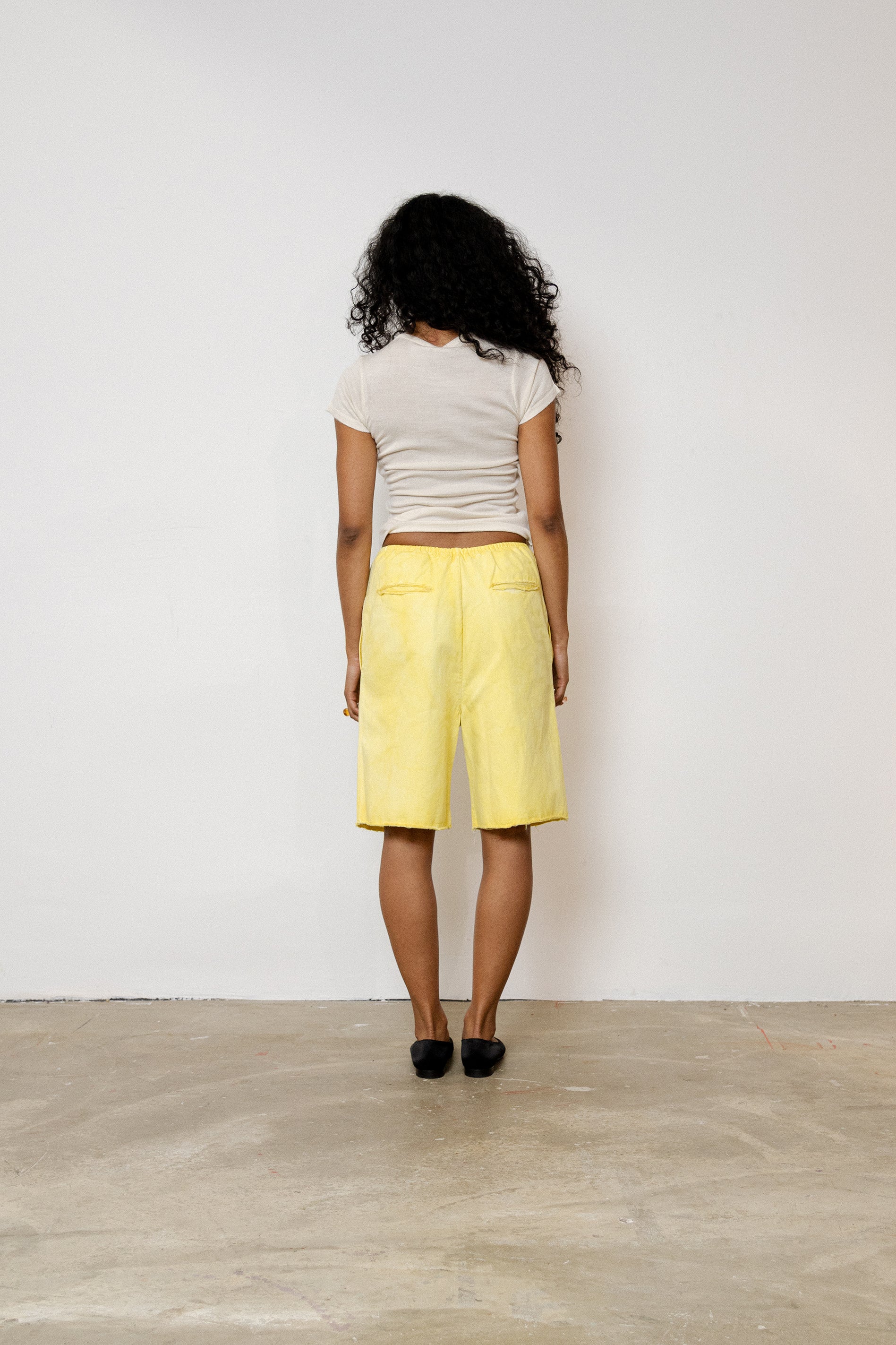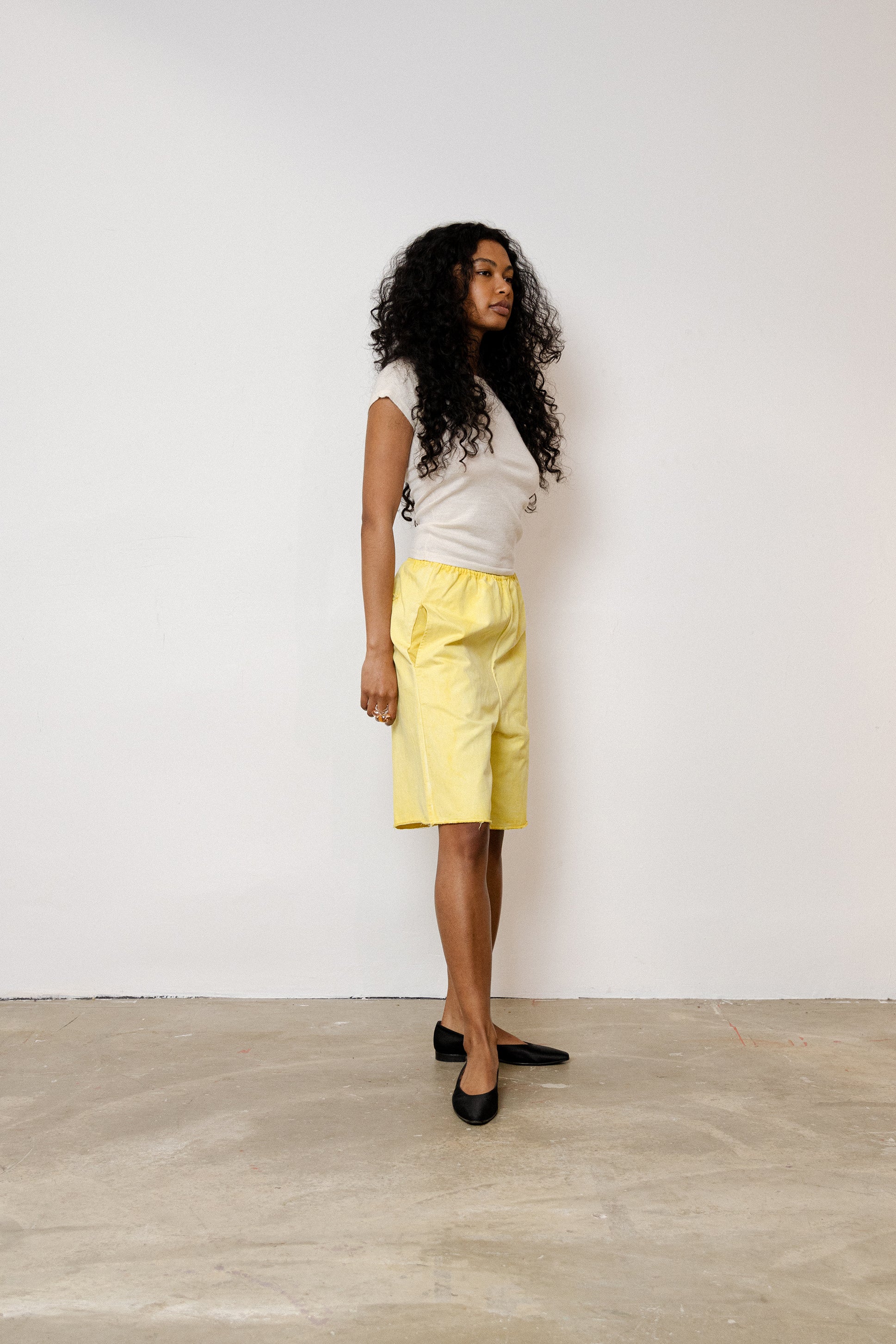 Yellow Cotton Twill Shorts