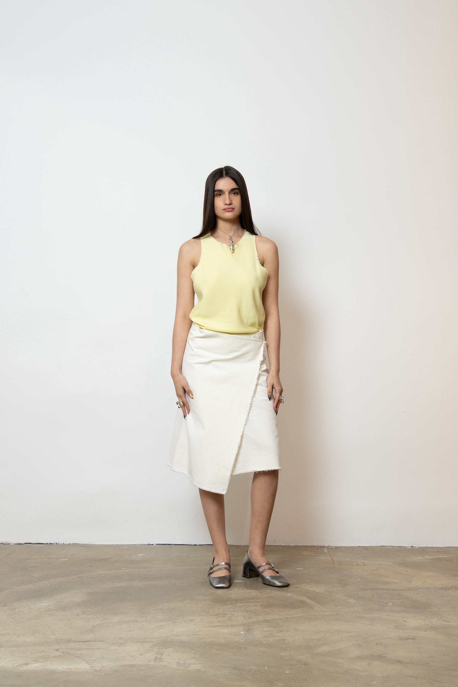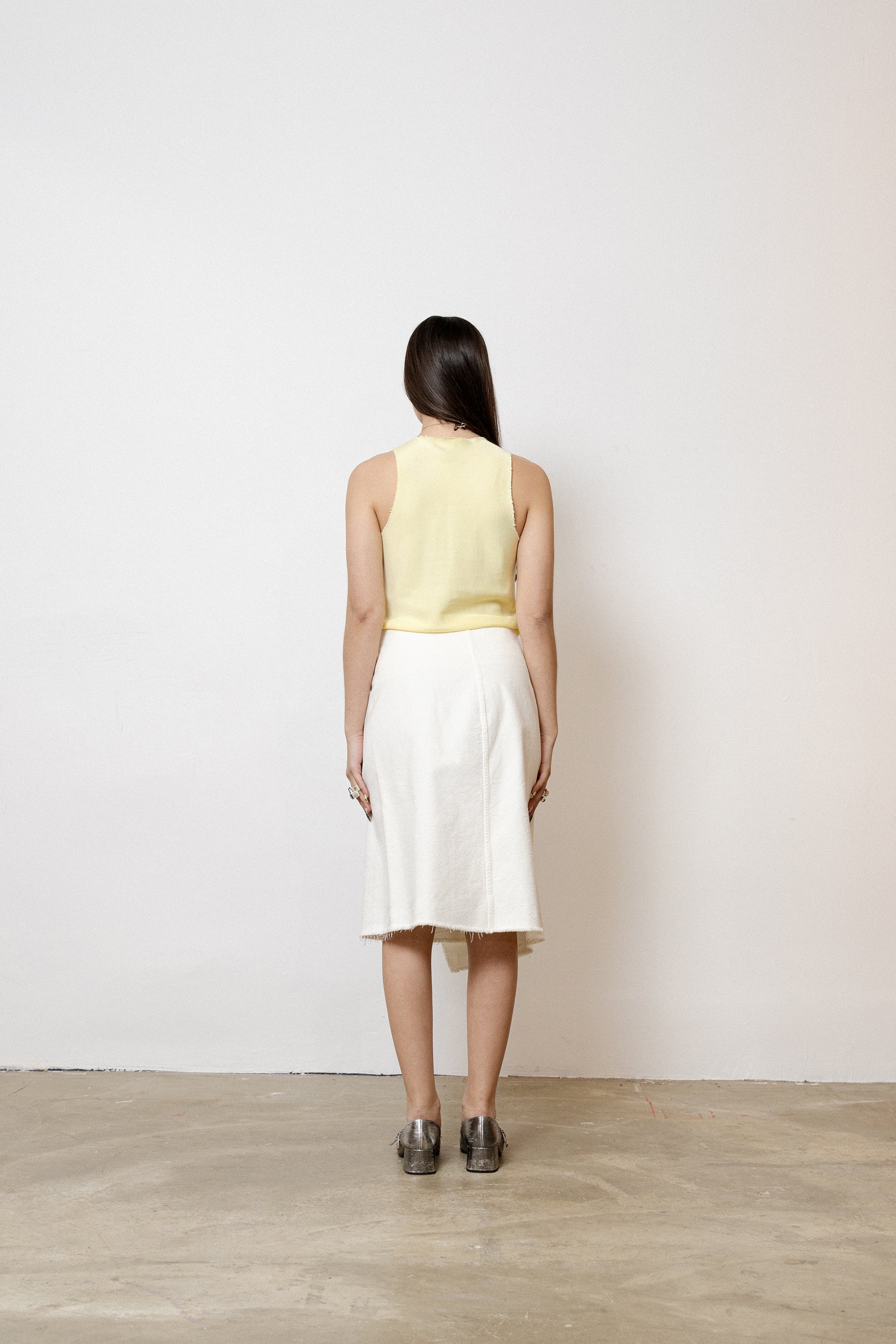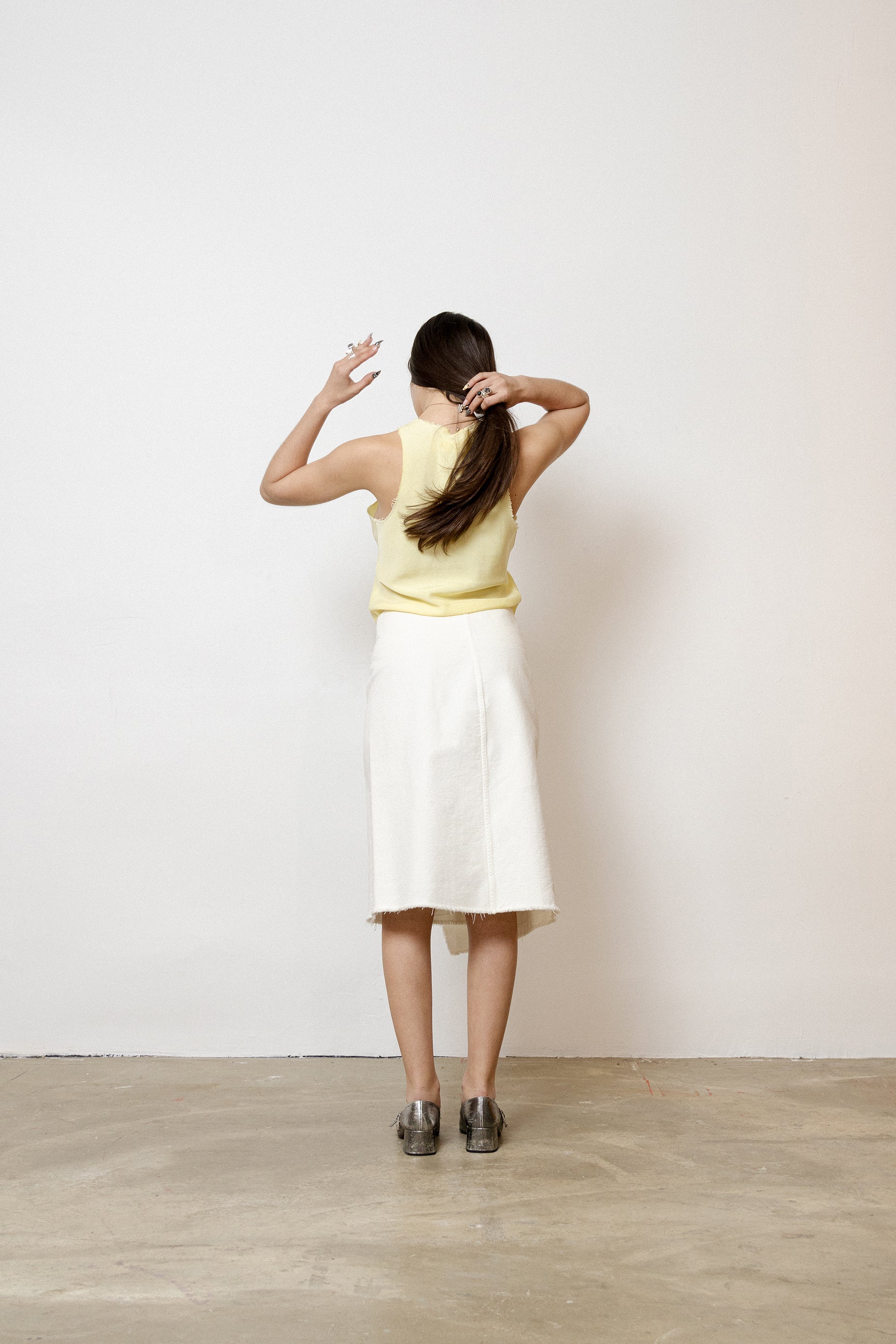 This piece, cut on the bias of the fabric, offers slight elasticity and adapts to your silhouette over time.